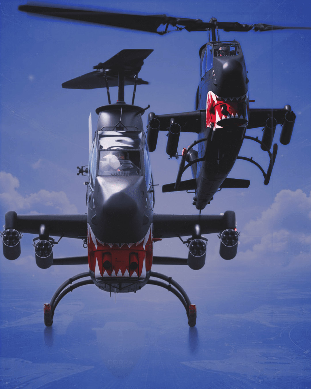 With its slender fuselage and distinctive rotor profile, the Cobra delivers a dramatic and unforgettable display.